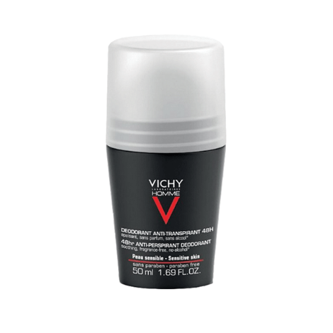 VICHY Homme Дезодорант шариковый мужской для чувствительной кожи замедляет потоотделение на протяжении 48 часов и уменьшает повышенную чувствительность кожи, устраняет запах пота и возвращает коже чувство свежести. Устраняет раздражение и смягчает кожу.
