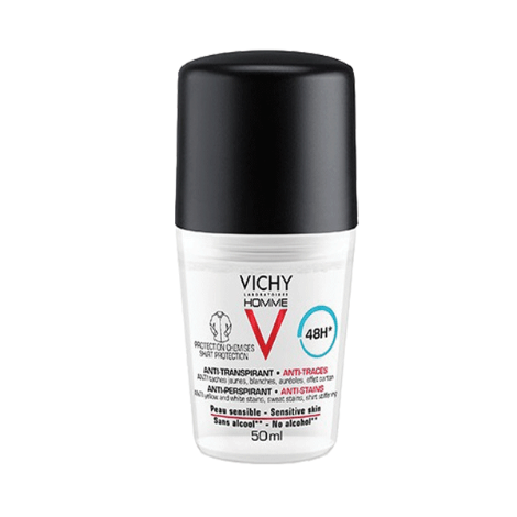 Шариковый Дезодорант-Антиперспирант VICHY для мужчин против пятен обеспечивает надежную защиту от белых, желтых пятен и следов пота на одежде, а также предотвращает изменение фактуры ткани. Имеет свежий аромат с нотами лайма, кориандра, кедра, ветивера.