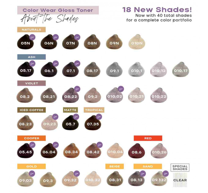 Color Wear Gloss Toner – это инновационный тонирующий жидкий краситель без аммиака и МЕА. Его инновационная запатентованная формула на основе аргинина натурального происхождения обеспечивает максимально мягкое и бережное воздействие на структуру волос.