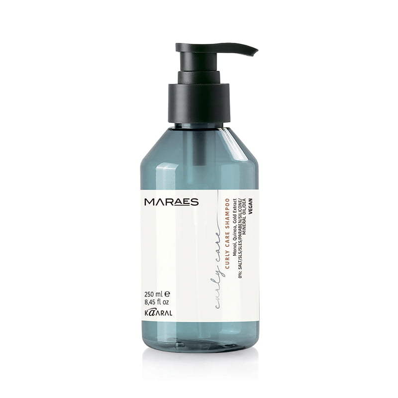 Восстанавливающий шампунь Maraes Curly Care на основе масла Моной, киноа и золота, которые обогащают протеинами тусклые и лишенные объема волосы, естественным образом оживляя их.