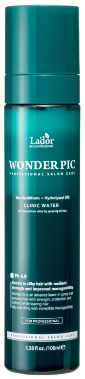 Wonder Pic Clinic Hair Water pH 4.9 от La'dor - ухаживающий спрей, который восстанавливает повреждения и защищает волосы от негативного воздействия окружающей среды. Спрей создан на основе полезных экстрактов вместо воды.