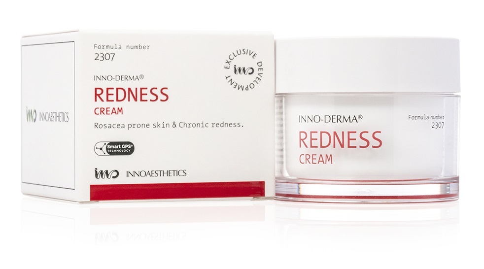 INNO- DERMA ® Redness Cream: крем cсоздан для чувствительной и склонной к покраснению кожи. Благодаря своим успокаивающим свойствам, он корректирует покраснения и предотвращает появление розацеа. Крем эффективно контролирует гиперреактивную кожу, предотвращает внезапное покраснение и усиливает естественные защитные способности кожи. Используйте его в ежедневном уходе, чтобы увлажнить и успокоить кожу, одновременно предохраняя ее от покраснения и проявлений сосудистой сетки.