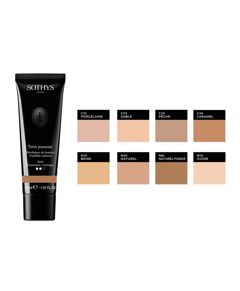 Ноу- хау лаборатории Sothys Advanced Research: «интеллектуальная» декоративная косметика! Тональная основа уникальной формулой повышает упругость и эластичность кожи, восстанавливает и укрепляет её барьерную функцию, нейтрализует свободные радикалы. Запатентованный омолаживающий комплекс Tri Complex βP3, пептиды M3.0, гиалуроновая кислота и «коктейль молодости» Омега-3, 6, 9 помогают воссоздать свежесть кожи, как в юности, скрыть признаки возраста, обеспечить интенсивное увлажнение и защиту. Легкая, тающая, пудровая текстура тональной основы Teint jeunesse великолепно ложится и распределяется, сливаясь с кожей. Мгновенно выравнивает тон кожи и придаёт сияние, разглаживает рельеф и «прячет» морщинки, создаёт заметный лифтинг-эффект. Кожа остаётся прекрасно увлажненной в течение всего дня, сохраняется ощущение комфорта, макияж не теряет стойкости и выразительности.